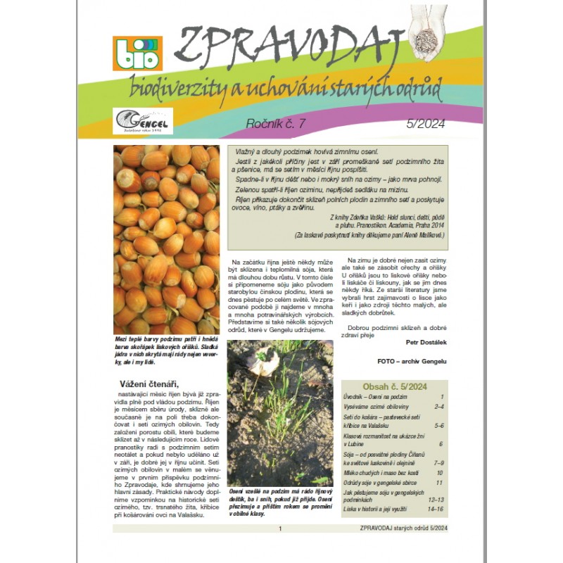 +++obsah zpravodaje 5/2024 – tematické číslo, věnované převážně sóji. 16 stran a4 ve formátu .pdf.+++ Úvodník – osení na podzim str.Příjemce :